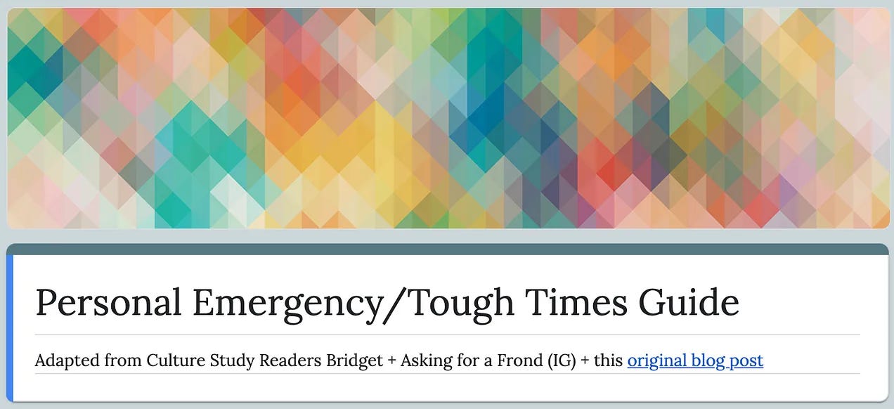 Is this form going to create an instant and miraculous community of care? Of course not. But it is going to make the work of creating it just a little bit easier.