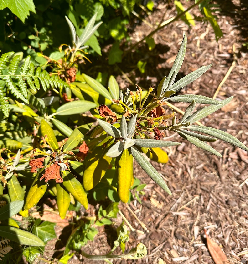 Planting another rhody and never watering it the entire summer because hey the other rhodies didn’t need additional watering???