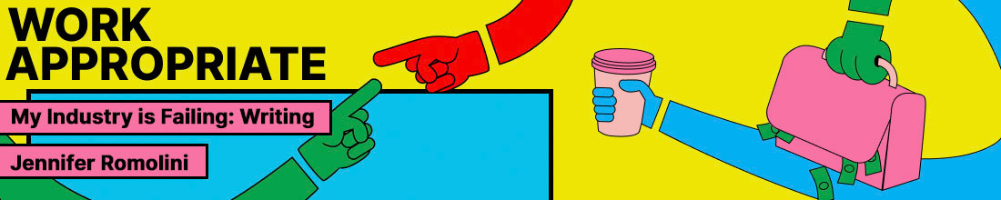 This week’s WORK APPROPRIATE is a personal fav — and you absolutely don’t have to be a person who writes for money to appreciate it. Jennifer Romolini is so funny, so wise, so warm — if you’ve worked in any passion industry, you will recognize yourself in her story and others’. I really can’t recommend it enough. Click the magic link to listen on your app of choice.