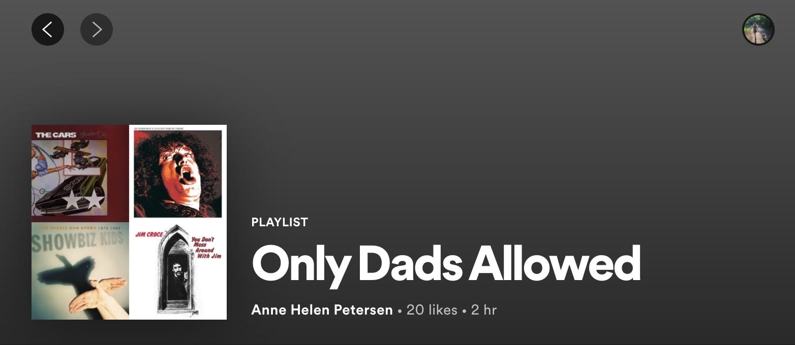 Since I started using Spotify, back in 2012, I have playlists and memories of albums that I’ve discovered and loved. That’s what the playlist screenshotted on the top of this piece is: an attempt at recovering the Dad Songs I love, either because my own Dad introduced them to me or because of their generation (boomer) Dad-ness. I have songs I’ve starred from the algorithm-generated playlists that are supposed to approximate my taste. But they don’t, not really; they’re often times just covers of songs that I already like but, like, slowed down and sung by a Jason Mraz knock-off, or stuff that’s vaguely in the bucket of “sad sack” because I spent a month only listening to The National. But I haven’t felt like I’ve had space to be with music, old or new, in a long time. My taste, and even that self that has time for taste, has felt so distant.