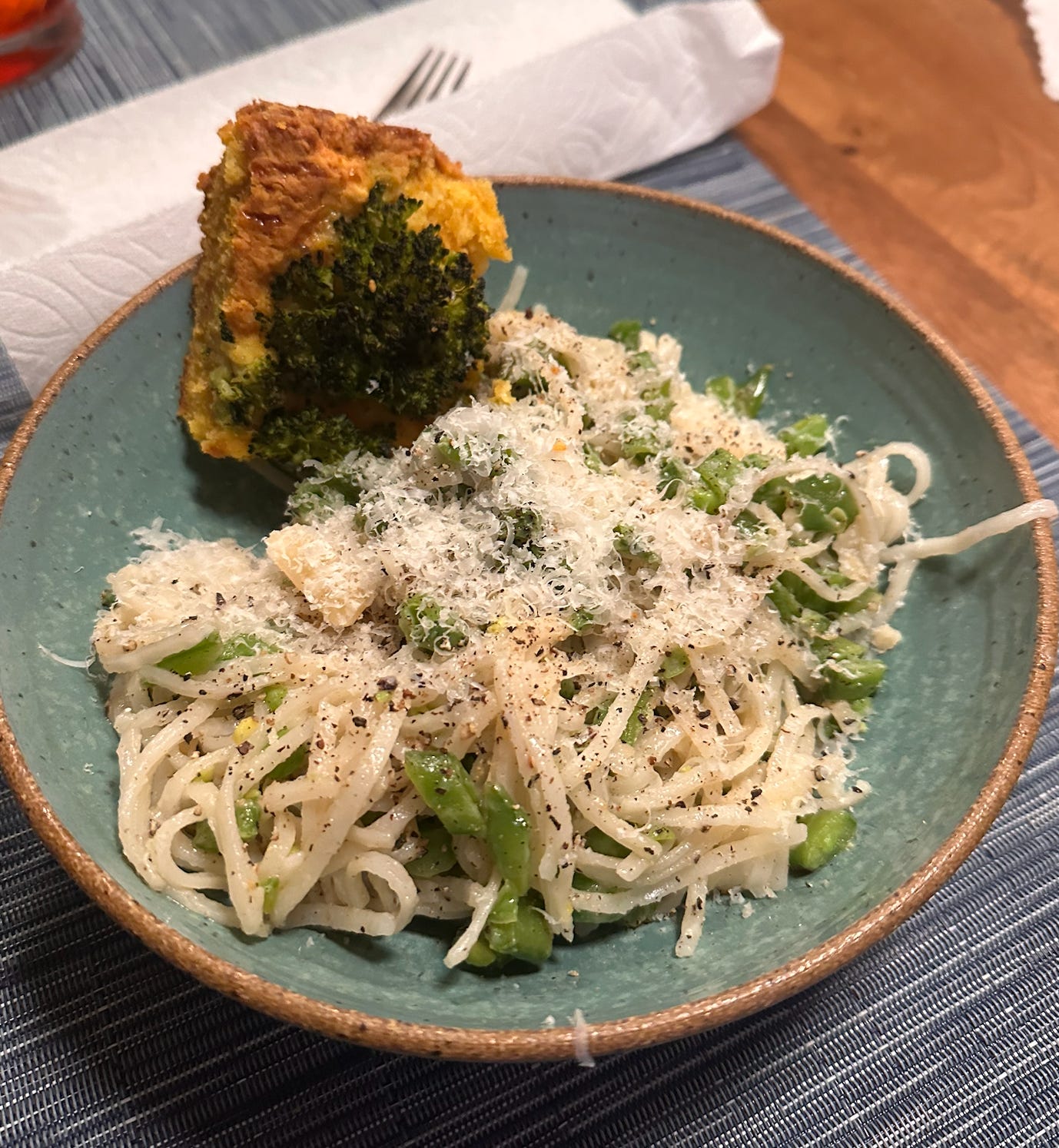 I made the loaf alongside the Tingly Cacio e Pepe for Charlie and my mom. My mom loved the Cacio e Pepe and Charlie and I both realized we’re just used to pastas with EVEN MORE VEGETABLES (and also more spice). We reheated the leftovers for dinner the next night and added a bunch of pan-steamed broccoli and red chili pepper flakes (and an egg on top, because that’s our favorite way to extend leftovers) and I liked it even more (it wasn’t that tingly, but that’s because the Szechuan peppercorns my mom brought over to replace my old Szechaun peppercorns were from 2020, womp womp)