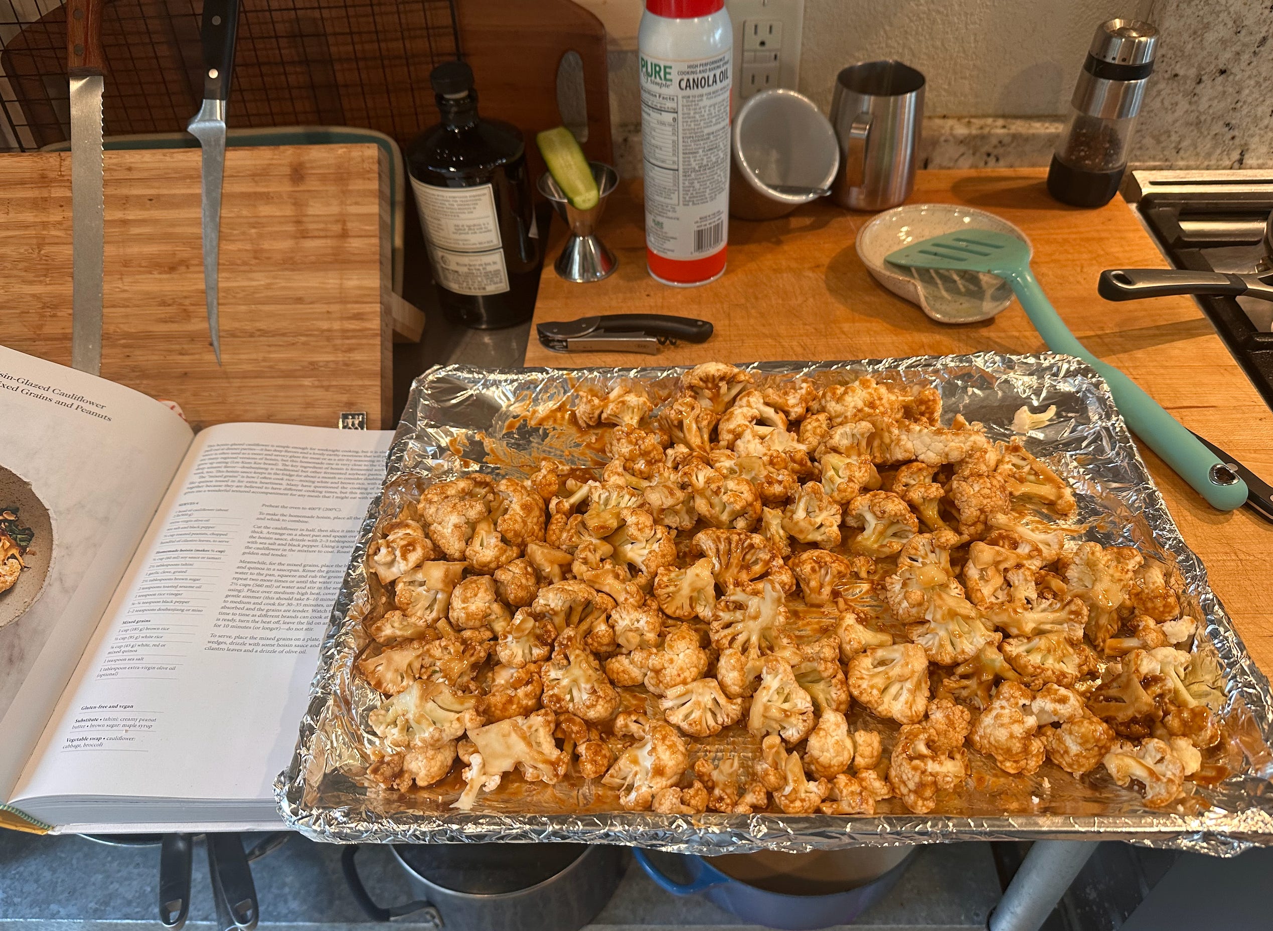 The Charred Cauliflower was my fav of the three recipes I made — loved the homemade hoisin & and will definitely make it again (and not run out of tahini and have to sub in a little peanut butter to supplement, although that turned out just fine). The recipe suggests cooking rice and quinoa together, and my end product was not as good as when I do one or the other on its own, which I mostly blame on user error. Still, next time I’d probably just cook my standard brown rice.