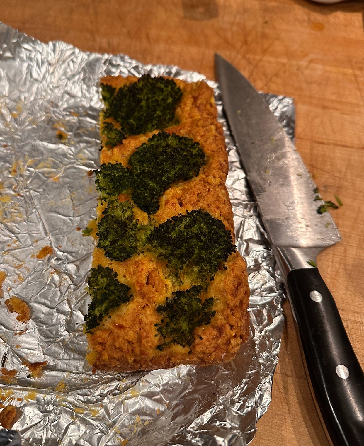 The Broccoli Forest Loaf is the sort of recipe I always dogear and never actually make — which is part of why I wanted to make it for this club! Olives are the only absolute will-not-eat food in my life (odd, I know, especially since I love pickles and other briny things), so I didn’t add them, but otherwise the loaf was as whimsical and delicious as expected; it really feels like a cheese bread with some exquisite broccoli bites. I didn’t have a bread loaf pan so I made it in a square pyrex and it was great. If your kid likes broccoli, they’ll be into this, I think.