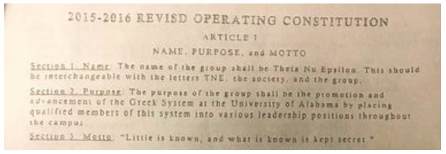 Welcome to Part Two of Bama Confidential, a week-long series that goes deep into the past and present of Greek Life at the University of Alabama. If you missed Part One — on sorority rush — or just want to read the intro to the series, and how it found its way to Culture Study, you can find it here. If you want to explore the content coming out of #Rushtok this week, I’m curating it over on my Instagram (and make sure and check the pinned stories).