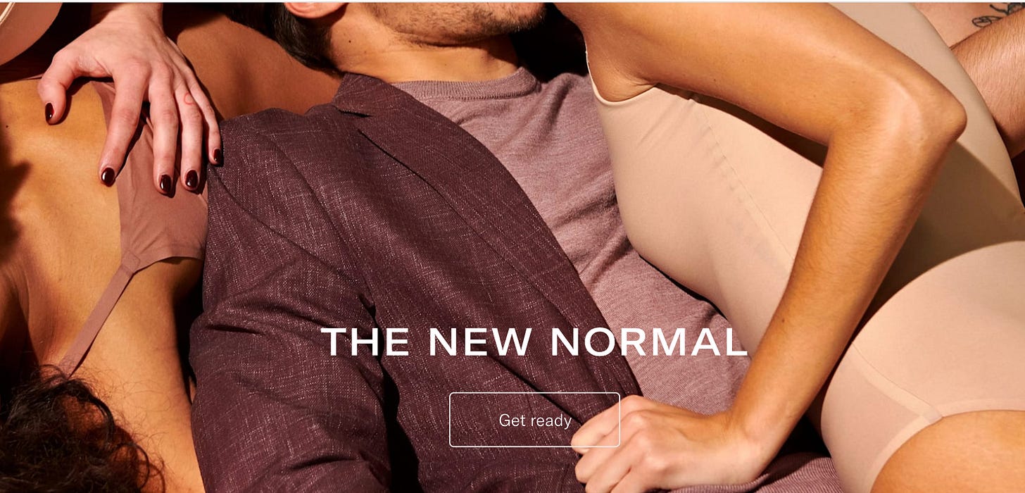 I am not yet ready for The New Normal. I’m so not ready for it that I had to crop the actual image from the ad campaign for Suit Supply before I put it at the top of this newsletter, because the Suit Supply New Normal is….ravenous. Too much. I’m overwhelmed, just looking at it and what it implies.