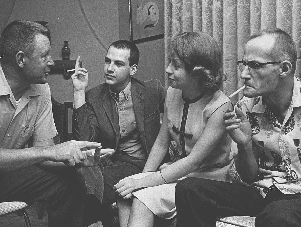My dad, Nathaniel Jr. (also known as “Junior” or “Natty”), belonged to one of the well-to-do families that lived in those Hills, a prominent military family in California politics. But beneath a veneer of Democratic respectability lay a family ravaged by trauma, abuse, and addiction. Tormented by prisoner-of- war flashbacks, my grandfather terrorized my father with knockout blows and fugues of rage. By eight, my dad was regularly robbing his parents’ medicine cabinet of sleeping pills and painkillers. By eighteen, he was subsisting on a daily diet of codeine and barbiturates.