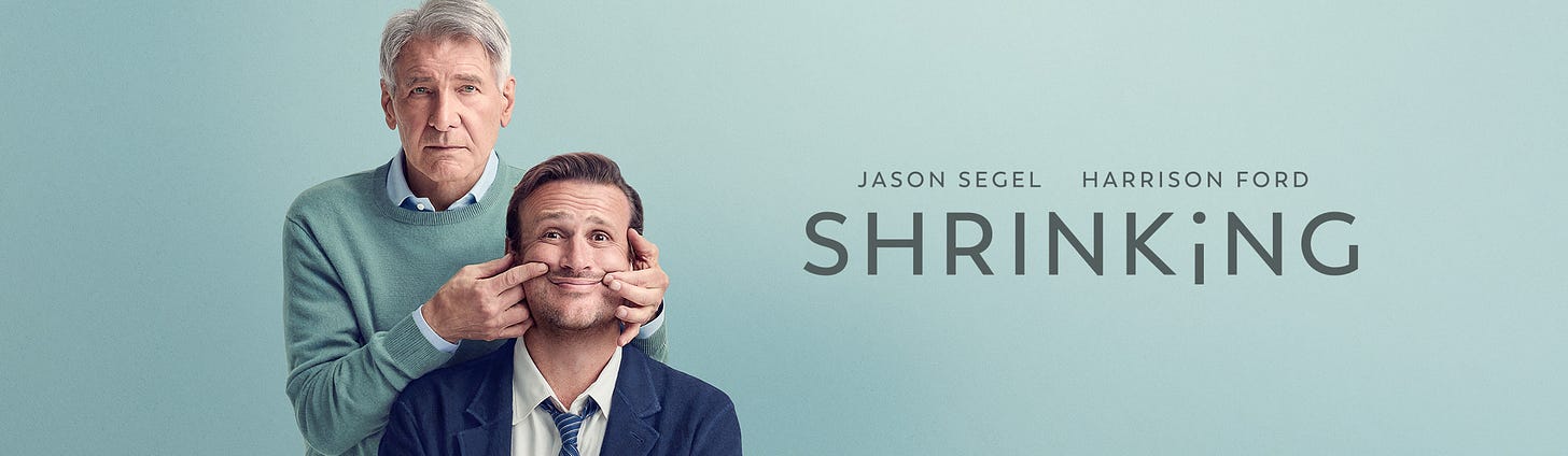 And then there’s Shrinking, a show about three therapists (Jason Segel, Harrison Ford, Jessica Williams) and their families working out their shit, most prominently the death of Segel’s wife in a car crash and the effect on him, his practice, and his teen daughter. Listening to the description, it should be much more maudlin and much less funny than it is, but the performances are just stellar — particularly on the part of Ford, Williams, and Lukita Maxwell (playing Segel’s daughter). Segal is just perfectly cast — his absolute star image role.
