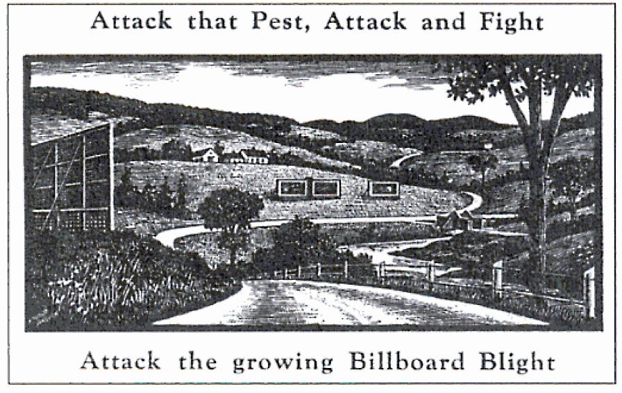 In Vermont, there’s a statewide law prohibiting roadside bulletin boards — the culmination of a movement that goes back to the 1930s. When I first moved there, I didn’t even notice. But after a few weeks, I realized how quiet my mind had been on the long drives from the school where I worked into town. My attention was where I wanted it to be: on the road, on the landscape, in the music I was listening to, in my own thoughts.