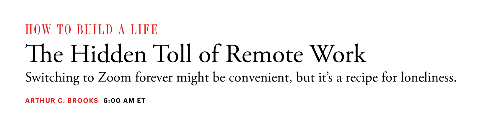 I don’t see loneliness in that scenario, or the equivalent, as Brooks argues, of a reduced salary. I see my version of a full life. As Charlie puts it, “We don’t work from home because work is what matters most. We work from home to free ourselves to focus on what actually does.”