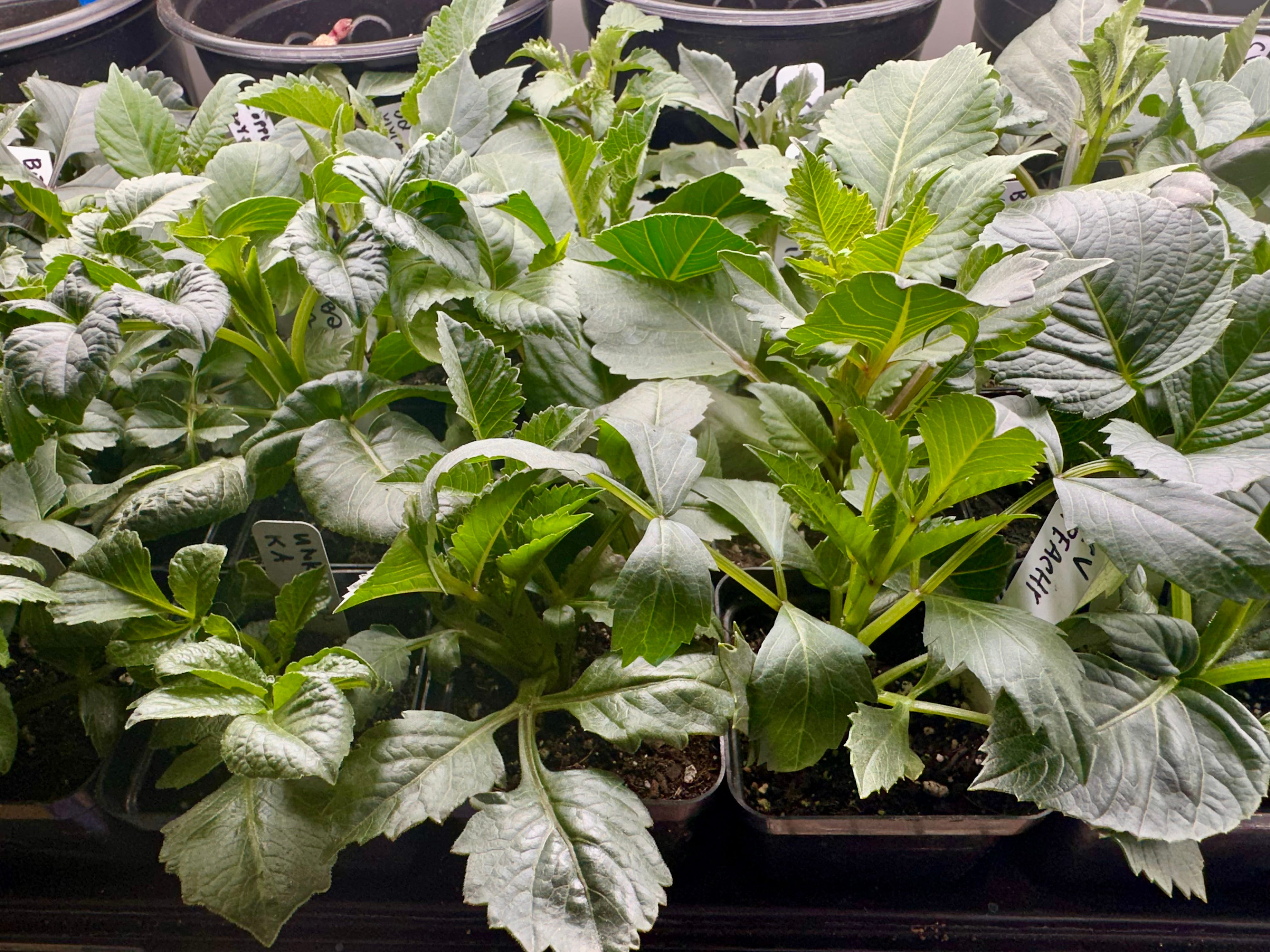 Right before I wrote this, I spent an hour in my grow room with a scalpel, carefully cutting sprouts off dahlia tubers before rolling them in rooting hormone and setting them up in their little humidity-domed homes, where they’ll sit for the next two weeks and slowly grow roots. You take a cut, put the scalpel in sanitizing solution, write the tag with its name, plug the cutting in its rooting material, and repeat. It’s meticulous work; for most people, I’d imagine it’s boring at best and annoying at worst. But I fucking love it. I love the little tags and the preposterous dahlia names I write on them. I love checking to see if the roots have emerged even when I know well they have not. I love the ceremony of turning all the shop lights on and off, on and off, the dawn and dusk of the plants’ day.