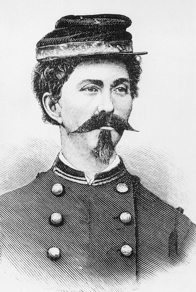 I loved learning about Loreta Janeta Velazquez, for example, who served in the Confederate Army under the alias Lieutenant Harry T. Buford. As Velazquez wrote in her memoir The Woman in Battle (1876), simply donning a uniform was not enough to allow her to pass as a man on the battlefield—she needed to change her hair, too, to be believed. Velazquez cut her hair short and purchased a fake mustache that she glued to her face; her friend suggested the mustache would not only give her appearance “a more manly air” but would also, crucially, make her disguise more convincing.